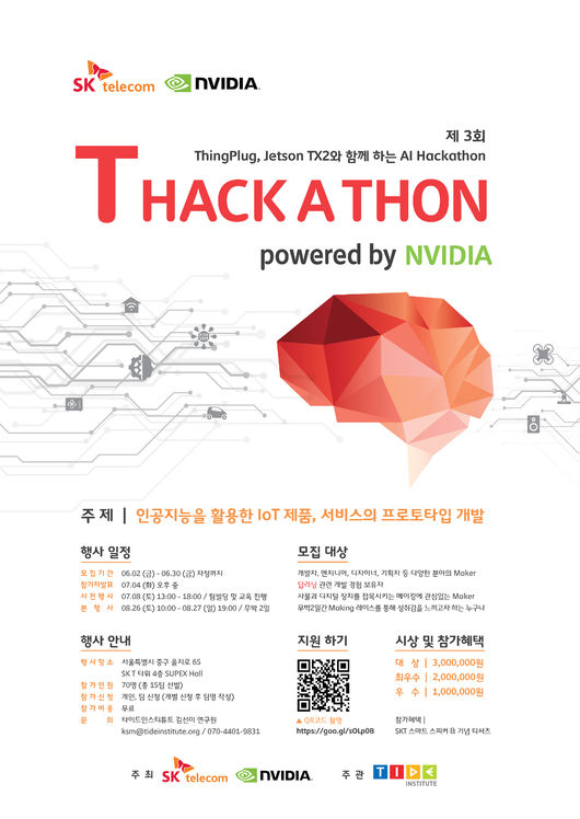 엔비디아 코리아 이용덕 지사장은 “엔비디아는 개발자들에게 혁신적인 제품과 교육 프로그램을 제공하며 인공지능 생태계 육성을 이끌어 왔다”며, “SK텔레콤과 함께하는 이번 대회에서 국내 개발자들이 엔비디아 젯슨 보드를 활용해 창의적 아이디어를 제품으로 구현해내기를 기대한다”고 밝혔다.