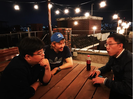 사진 속에는 노홍철과 김제동, tvN ‘알쓸신잡’에서 활약 중인 정재승이 머리를 맞대고 신나게 이야기 중인 모습이 포착돼 있다.