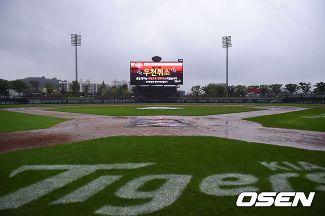 이날 광주 기아 챔피언스필드에서 열린 예정이던 한화-KIA전도 비로 인해 연기됐다. 한화와 KIA의 7일 경기에는 KIA는 6일 예고된 임기영이 그대로 선발 등판하지만, 한화는 알렉시 오간도 대신 윤규진으로 선발 투수를 바꿨다. /orange@osen.co.kr
