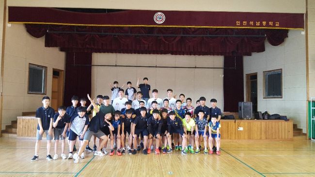 지난 14일(수) 인천 석남중학교를 찾아 농구 저변 확대를 위해 차바위, 김상규, 이정제, 강상재가 나섰다. 지난 하늘고 농구 클리닉에 이어 이번에도 학생들의 열기가 뜨거웠다.