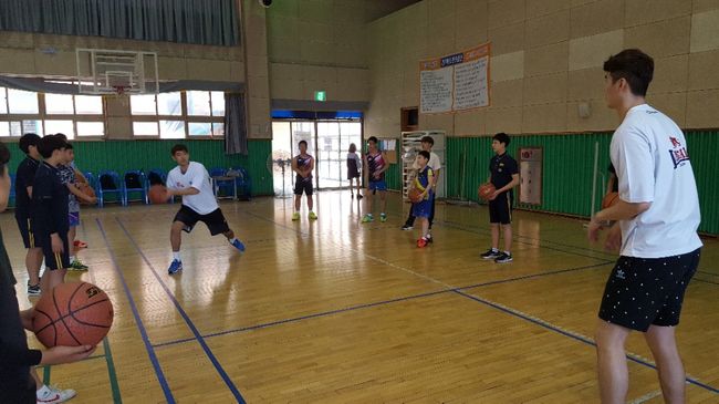 선수들은 학생과 함께 간단한 몸풀기를 한 후, 2개조로 나뉘어 드리블, 패스, 점프슛, 레이업 슛등 각각 파트 별로 원 포인트 레슨을 실시 하였다. 40분간 수업을 마친 후 학생들과 간단한 게임을 실시 하였다.