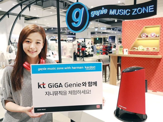 지니뮤직과 하만의 대표 오디오 브랜드 JBL은 제휴를 맺고 지난해 12월부터 현대백화점 목동, 중동점, 현대아울렛 송도점 3곳의 JBL스토어에 음악체험공간 지니뮤직존을 운영해왔다. 기존 지니뮤직존에서도 기가지니 체험이 가능하도록 해 매장을 찾는 소비자들은 편리한 AI음악서비스를 체험해볼 수 있다.