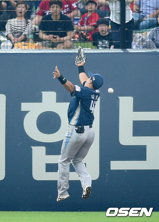 전날(1일) 경기에서의 실책성 플레이는 더욱 뼈아팠다. 5-6으로 뒤진 7회말, 2사 만루에서 황진수에 우중간 안타를 맞았다. 3루 주자와 2루 주자의 실점은 어쩔 수 없던 상황. 그러나 나성범이 이 타구를 쫓아간 뒤 포구를 하려는 순간 넘어지면서 주자 일소 싹쓸이 3루타를 만들어줬다. 실책으로 기록되지 않았지만 나성범의 수비에 결국 시리즈 두 번째 경기도 5-9로 내주고 말았다.