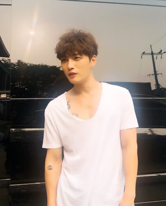 공개된 사진 속에서 김재중은 강아지처럼 귀여운 매력이 돋보이는 펌 헤어에 편안해 보이는 흰 티셔츠를 입고 촬영을 기다리는 듯한 모습이다.