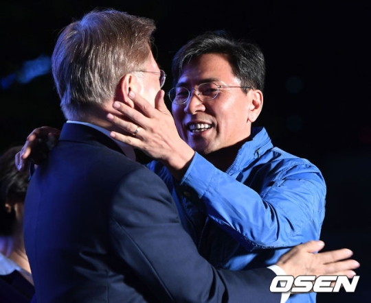 하지만 경선 이후 문 대통령의 '도우미'를 자청했고, 특히 문 대통령에게 기습 뽀뽀를 강행한 사건으로 두 사람이 지난 앙금을 말끔하게 털어냈음을 보여줬다.