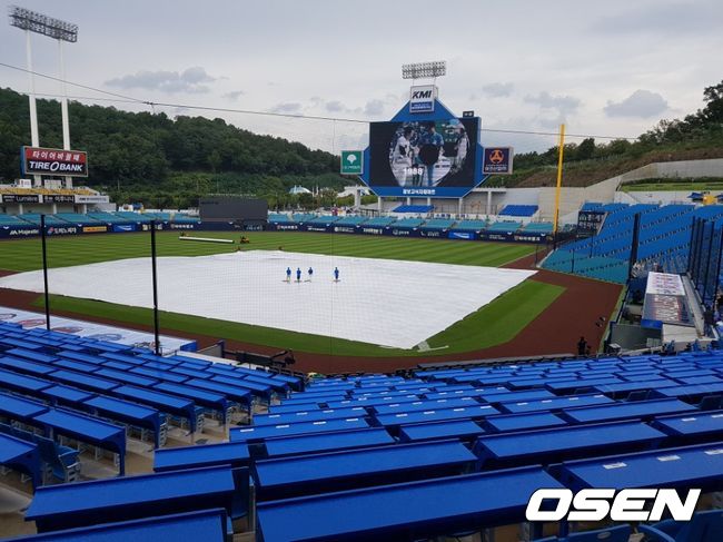 기자가 오후 1시 30분께 야구장에 도착했을때 빗줄기가 가늘어졌고 그라운드 관리 요원들이 물기 제거 작업에 나섰다. KBO 관계자는 "비가 올 경우 오후 6시까지 기다릴 예정이다. 내일로 연기된다면 관중 동원 및 선수 컨디션 조절 등 모든 면에서 약영향을 줄 수 있다"고 말했다.
