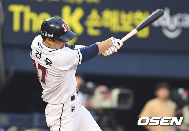 박건우는 21일 서울 잠실구장에서 열린 2017 타이어뱅크 KBO리그 한화 이글스와의 팀간 9차전에 3번타자 겸 중견수로 선발 출장했다.