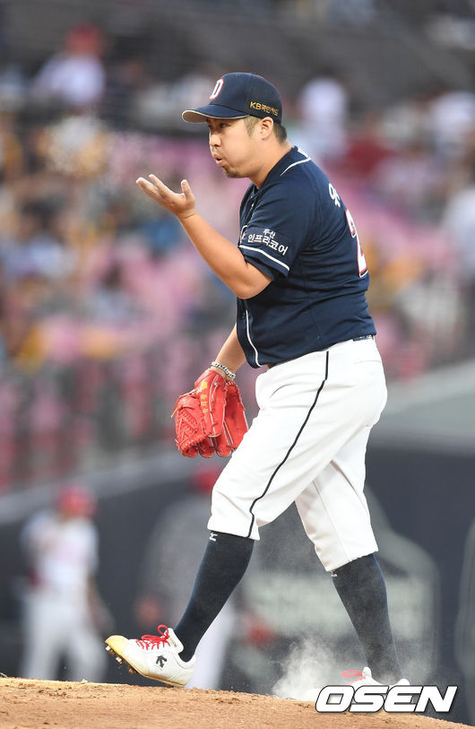 투구수는 101개. 타선도 초반 기세를 잇지 못하고 불펜을 조기가동한 KIA 투수진에 막혀 힘을 보태지 못했다. 1회와 3회의 실점으로 이어진 수비 실책도 그에게는 뼈아팠다. 뒤를 이은 김승회가 김선빈을 병살로 잡아내 추가 실점을 막아주었다. /sunny@osen.co.kr