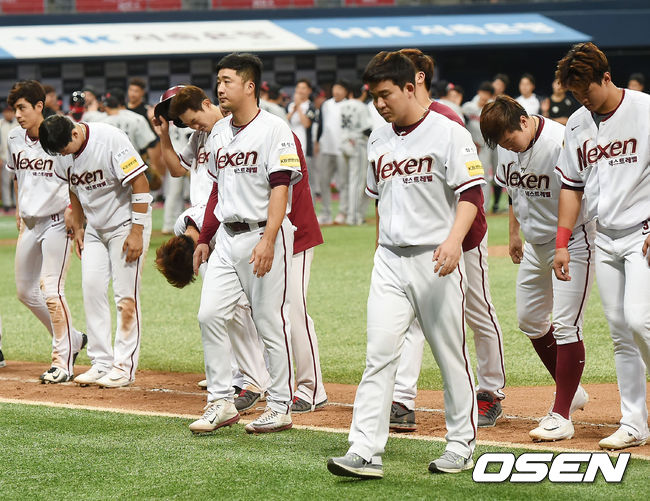 넥센은 8일 고척 스카이돔에서 벌어진 ‘2017시즌 타이어뱅크 KBO리그’ LG와 최종전에서 연장 접전 끝에 9-10으로 패했다. LG(62승59패3무)는 넥센(66승63패2무)과 승차 없이 동률을 이뤘으나 승률에서 앞서 7위서 5위로 뛰어올랐다. 넥센은 6위로 밀렸다.