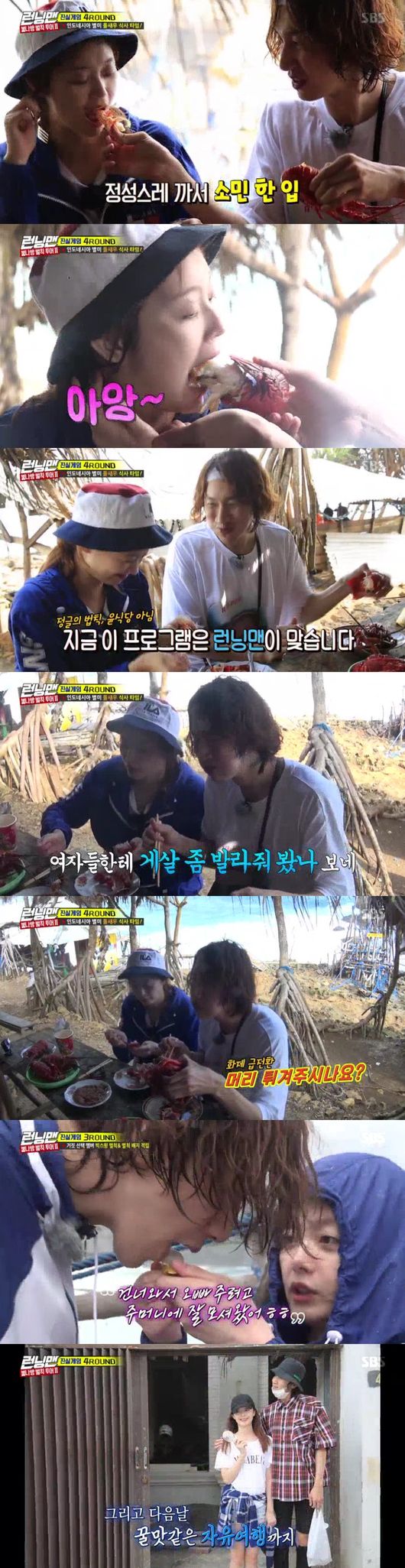 갈등(?)도 있었다. 이광수는 새우를 빌미로 전소민의 라면을 한 입 달라고 했다. 전소민은 결국 라면을 다 빼앗겼지만 쉬지 않고 새우와 게를 까주는 이광수에게 '심쿵'했다.