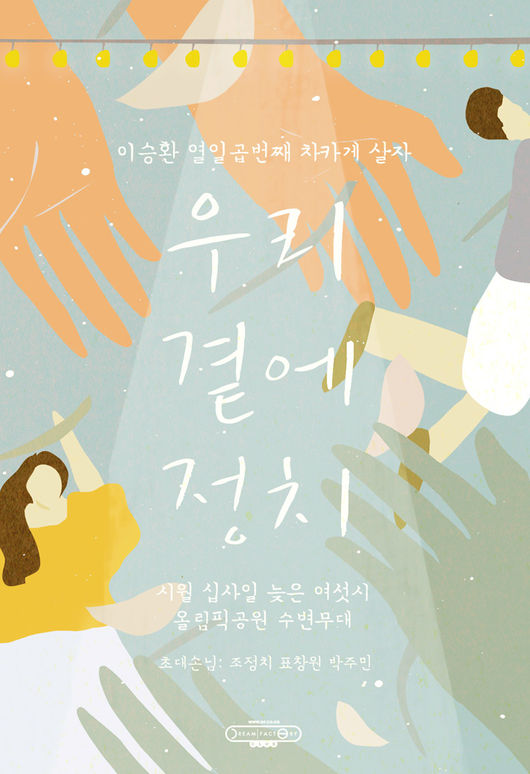 올해에는 '우리 곁에 정치'라는 이름으로 정치가 삶에서 따로 떼어 생각할 수 없다는 의미를 전한다. 초대 손님으로는 조정치 그리고표창원, 박주민, 주진우 등이 나서 노래와 강연이 만나는 토크콘서트를 꾸민다.