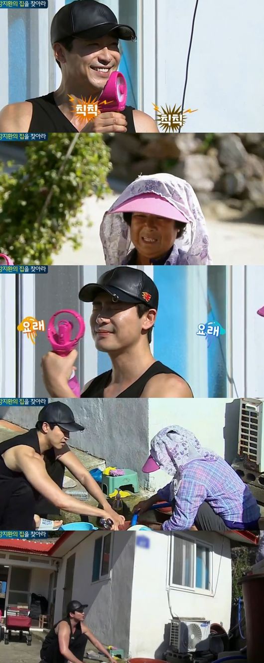 강지환은 할머니가 설거지를 하자 바로 옆에 앉아서 돕기 시작했다. 할머니는 "되게 자상하네"라며 미소를 지었다. 또한 물이 나오는 휴대용 선풍기를 틀어주며 할머니의 더위를 식혀드렸다.