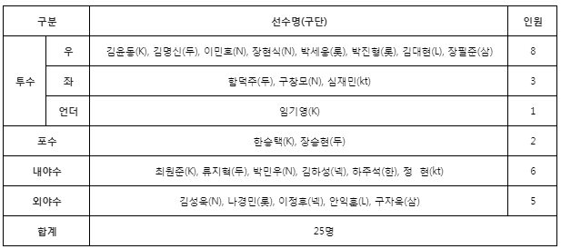 ■ 아시아 프로야구 챔피언십 2017 엔트리(25인)