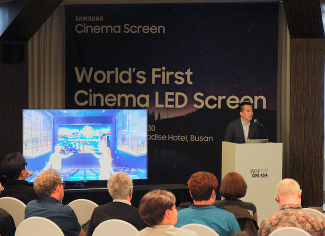 삼성전자가 지난 16일 부산 파라다이스 호텔에서 부산영상위원회가 주관하는 영상 기술 포럼인 ‘링크 오브 시네 아시아(Link of Cine Asia)-아시아 영화 포럼 & 비즈니스 쇼케이스’에 참가해 국내외 영화 업계 관계자 약 150명을 대상으로 세미나를 개최하고 시네마 LED가 가져올 영화관의 미래상을 소개했다.