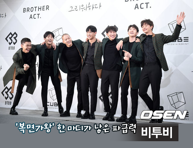 "저는 '서서브보컬'입니다". MBC '복면가왕'에서 엄청난 가창력으로 화제를 모았던 육성재의 한 마디가 낳은 파급력은 굉장했다. 실력파 아이돌 그룹 비투비를 그대로 표현하는 말이기도 했다. 발라드 그룹으로 노선을 변경한 뒤 '복면가왕'이라는 화룡점정을 더한 비투비는 최근 신곡 '그리워하다'로 음악방송, 음원차트 1위를 휩쓸었다.