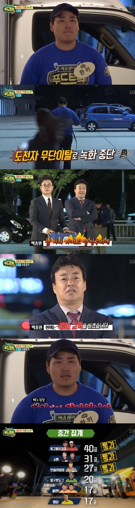 이날 플랜F, 명구핫도그, 앗싸라비아, 빛고을 닭강정, 소맨, 한끼, 펭닭이 최종 우승자가 됐고, 펫살, 옥향, 여대새는 탈락했다. 이날 한끼는 백종원의 독설에 무단 이탈을 해 충격을 안겼다. 백종원은 한끼에게 "합격해도 특별 지도를 받아야한다. 문제가 많다"고 했다. 다시 돌아온 한끼는 "겸허히 받아들이겠다"고 말했다.