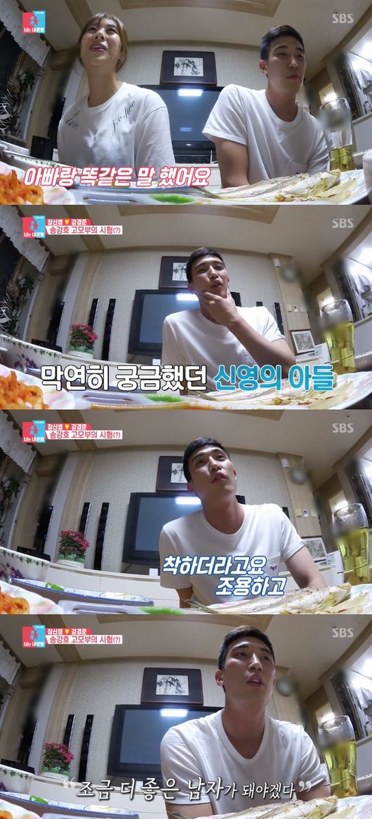 앞서 강경준은 장신영의 아들과 통화를 하며 살가운 모습을 보여주기도 했다. 하지만 "엄하게 하기도 좀 뭐하고 그럴 때가 있다"며 자신만의 고민을 털어놓기도 했다. 이런 강경준에 장신영은 "제가 채워주지 못하는 부분, 제게 말하지 못하는 걸 같이 얘기하고 그러는 것 같다"고 고마운 마음을 전했다.