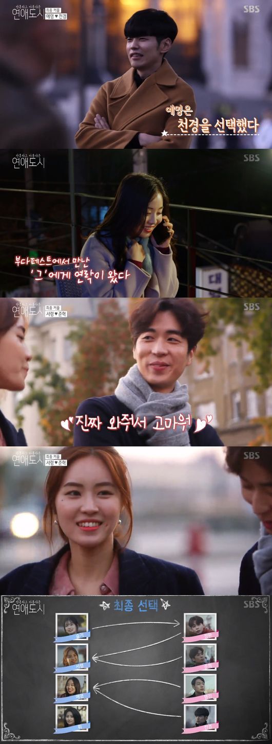 '연애도시'에서는 이서령을 두고 신정환과 최준혁이, 박예영을 두고 채명진과 박천경이 팽팽한 삼각 로맨스를 형성했다. 여성들이 자신의 마음에 둔 남성들이 있는 장소로 찾아가는 최종 선택에서 이서령은 최준혁을 선택했고, 박예영은 박천경을 선택했다. 특히 박예영과 박천경은 부다페스트 여행 후 서울에서도 좋은 만남을 유지하는 모습으로 커플 탄생을 알렸다.