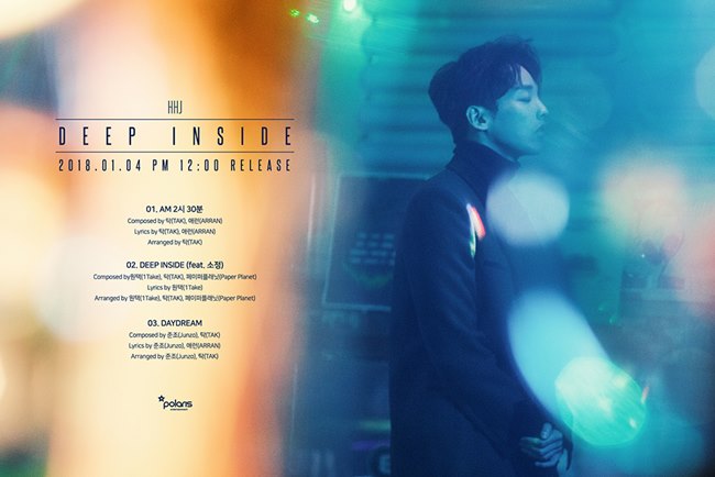한희준의 소속사 폴라리스 엔터테인먼트는 28일 0시 공식 SNS 채널을 통해 내년 1월 4일 정오에 발매되는 한희준의 싱글 '딥 인사이드'(DEEP INSIDE)의 트랙리스트가 담긴 이미지를 공개했다.