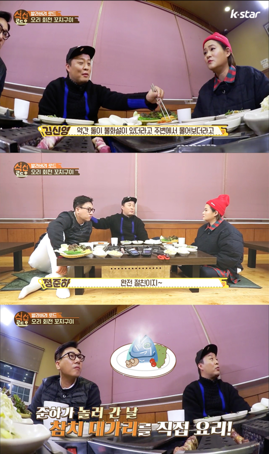 '식신로드3' 촬영자 속초와 춘천 맛집을 방문한 정준하에게 김신영은 주변 사람들이 이상민과 불화설을 이야기한다고 말했다.