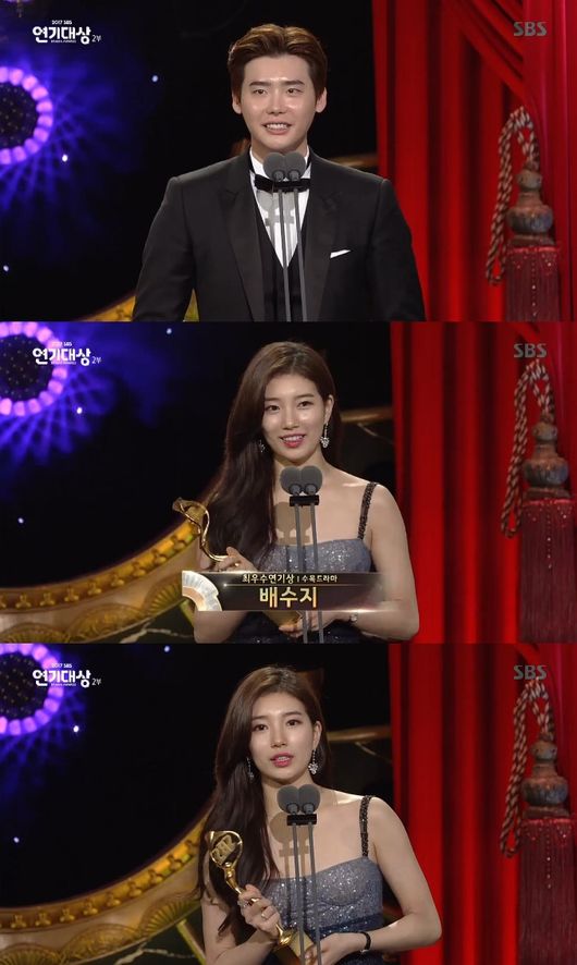 배우 이종석과 배수지가 수목드라마 부문 최우수 연기상을 수상했다.