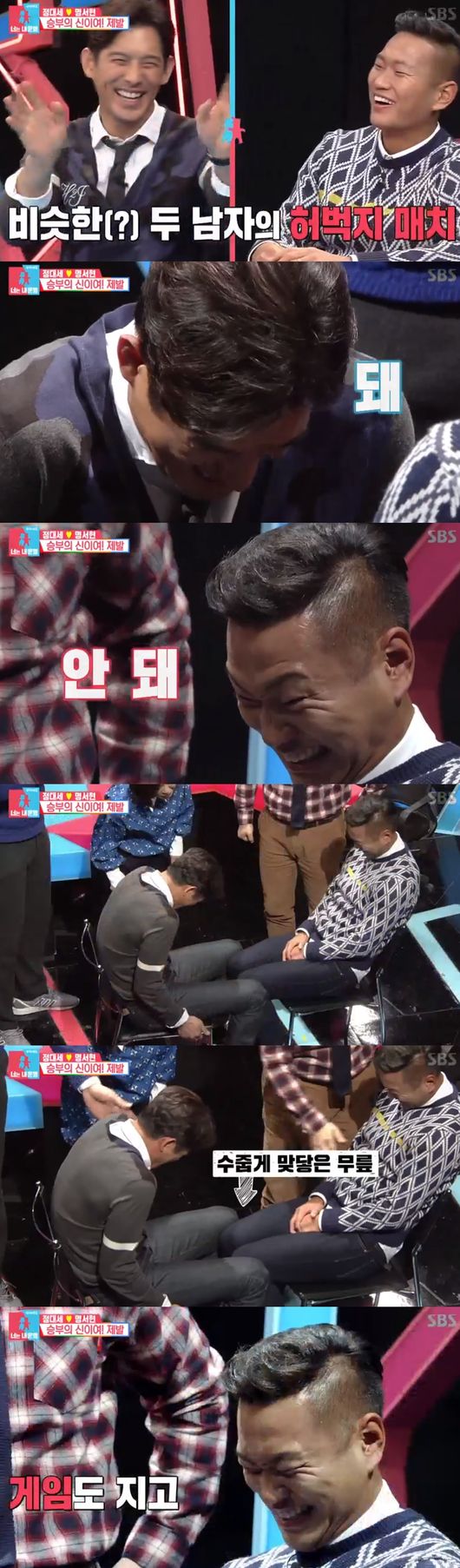 정대세가 오지호와 허벅지 씨름에서 패했다.