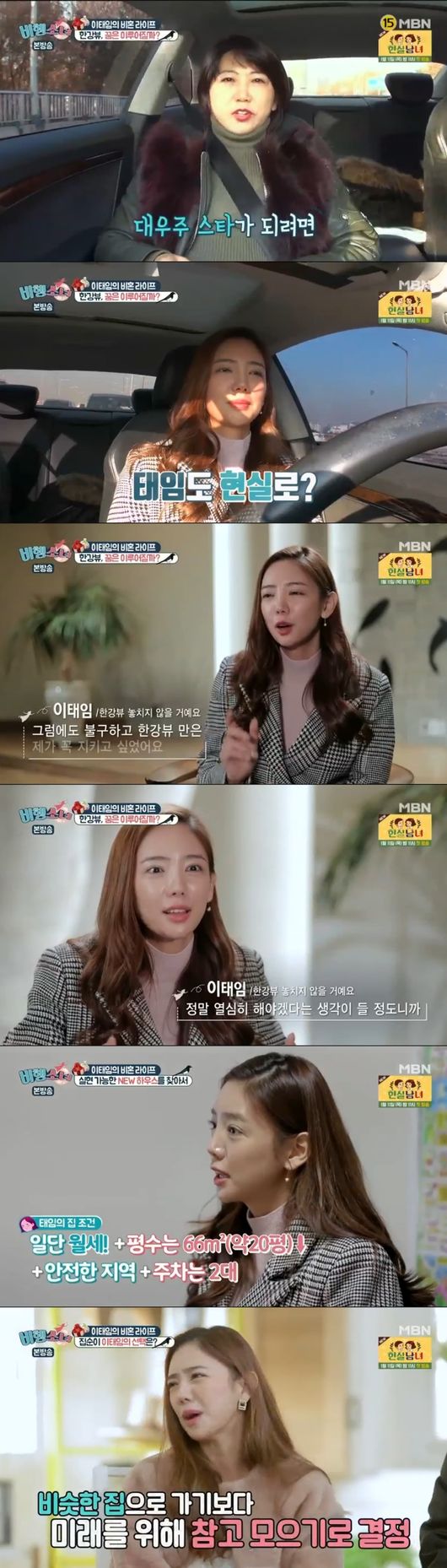 하지만 다음집을 보러가면서 이태임은 현실을 직시했고, 부동산에서 보여준 오피스텔에 만족했다. 이날 비혼 여성이 살기 좋은 오피스텔 두 곳이 소개됐고, 이태임은 첫번째 집에 만족감을 나타냈다. 매매가는 6~7억. 이태임은 당장 계약할 기세였지만, 어머니는 "더 살펴보고 고민해야지"라며 이태임의 급한 성격을 지적했다.