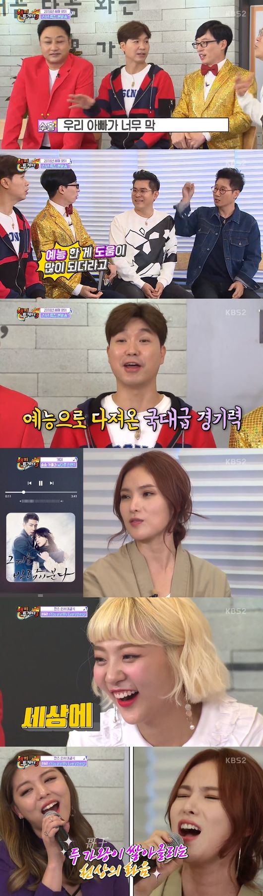 KBS 2TV ‘해피투게더3’가 10주 만에 돌아왔다. 기나긴 파업 끝에 음원차트를 점령한 거미, 에일리, 볼빨간사춘기, 리듬파워가 출연해서 노래와 함께 감동을 전했다.