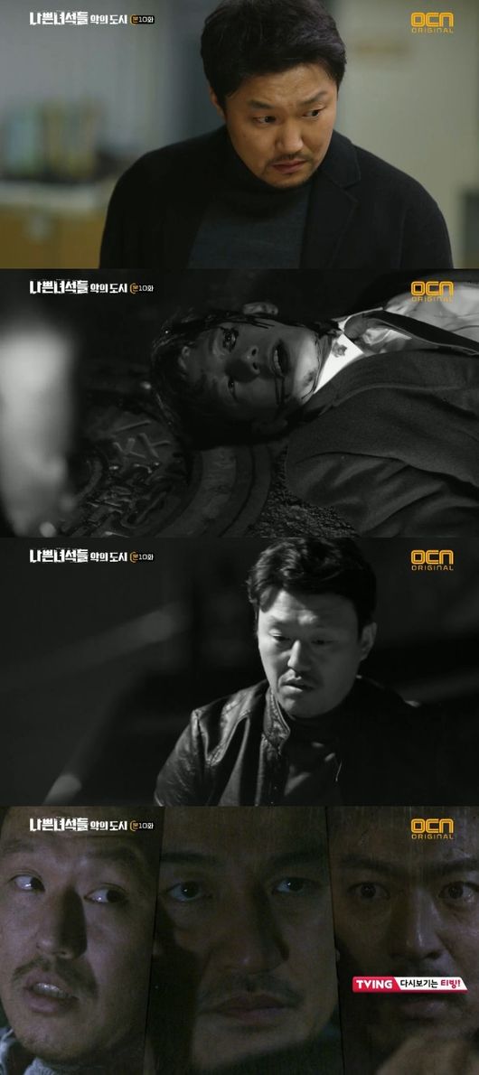 지난 14일 방송된 OCN 주말드라마 '나쁜 녀석들:악의 도시' 10회에서는 제작진이 예고한대로 노진평을 살해한 진범의 정체가 밝혀졌다. 우제문(박중훈 분)은 시종일관 박계장을 의심했지만, 진짜 범인은 황민갑이었다.