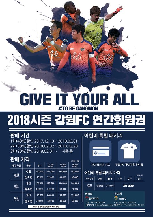 강원FC는 지난해 12월 18일부터 인터파크를 통해 연간 회원권 판매를 진행한 가운데 올해 2월 1일까지 구매하는 사람들을 대상으로 40%까지 가격 할인 이벤트에 나섰다.