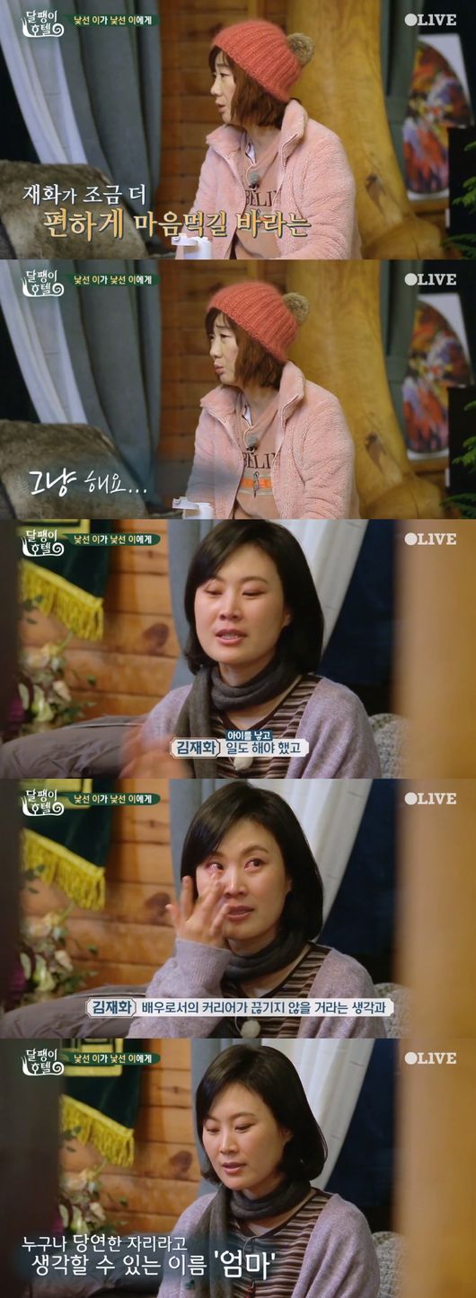 김재화는 “요즘 자신감이 많이 떨어져있는데 회복을 하고 싶다. 남들은 잘 모르는데 좀 많이 떨어져 있는 상태다”라고 했다. 이상은이 좀 쉬어야 하는 게 아니냐고 하자 김재화는 “저에게 주어진 역할이 너무 많다. 갑작스럽게 엄마도 됐다. 엄마라는 것을 아직, 어떻게 해야 할지 모르겠다. 아이들도 엄청 사랑스러운데 그 무게가”라며 눈물을 흘렸다.
