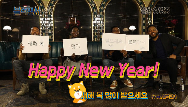 또한 이들은 대한민국 명절인 설날을 맞아 직접 한글쓰기에 도전했다. 채드윅 보스만부터 마이클 B. 조던, 루피타 뇽, 라이언 쿠글러 감독이 직접 한글로 쓴 "새해 복 많이 받으세요"라는 인사는 따뜻한 설날 메시지로 눈길을 끈다. 4명 모두 진지한 태도로 정성스레 한글을 쓰는 모습에서 팬들을 향한 애정까지 느낄 수 있어 훈훈함을 더한다.