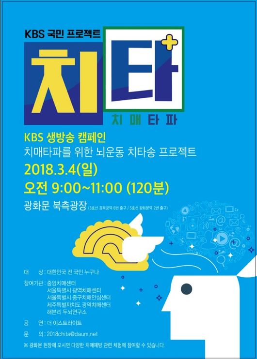한편, KBS 국민프로젝트 ‘치타’는 ‘치매타파’의 줄임말로, 현재 초고령화로 접어들고 있는 대한민국의 치매환자 현주소를 살피고 치매타파를 위한 캠페인을 벌이고 있다.