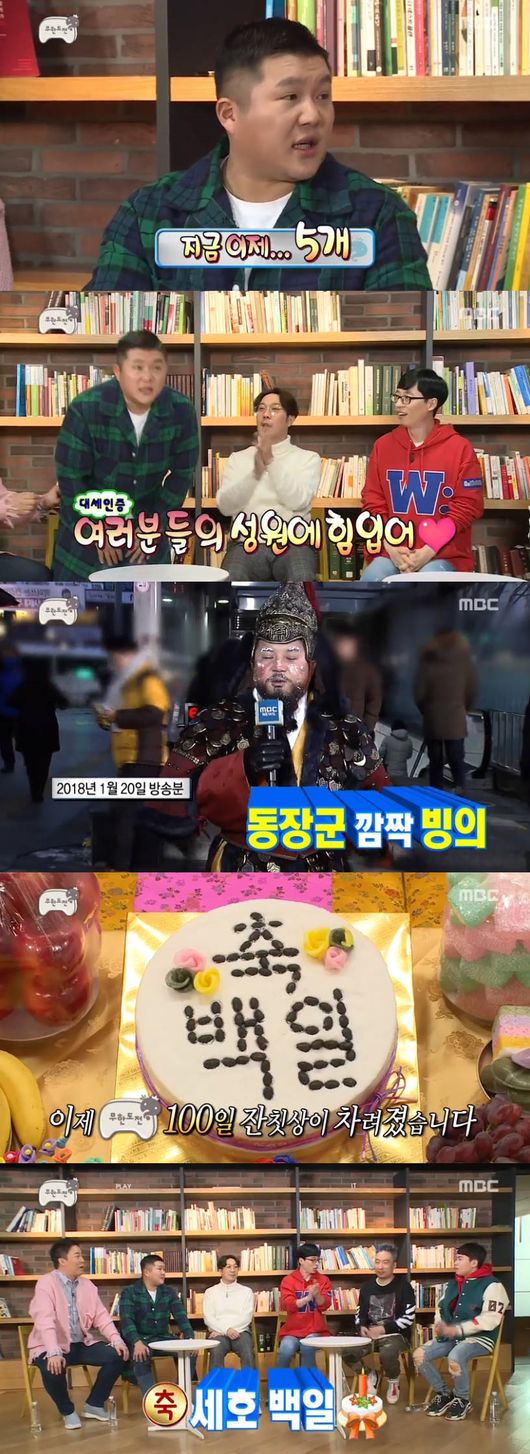 조세호는 3일 오후 방송된 MBC 예능프로그램 '무한도전'에서 합류 백일 맞이 잔치를 가졌다.