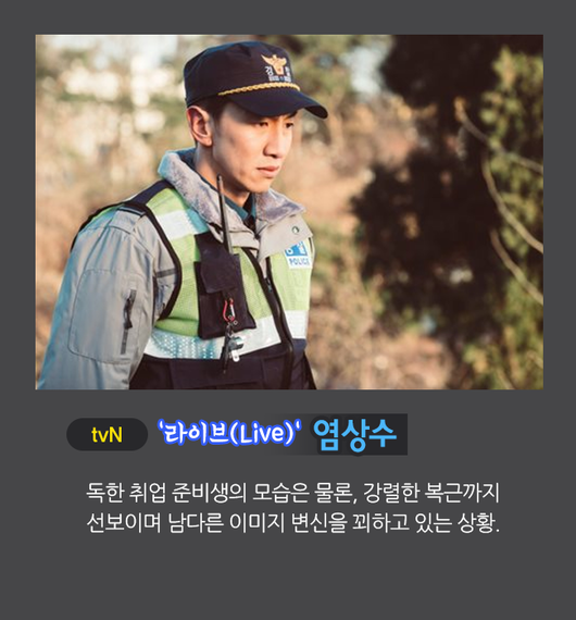 그로부터 또 2년 후, 다시 노희경이다. 이번엔 '괜찮아, 사랑이야'에서 함께했던 김규태 PD와 함께 노희경 작가와 재회한 이광수. 극 중 신입 경찰 염상수 역을 맡은 그는 사수 오양촌(배성우 분)과 계속해서 엇갈리는 모습으로 안타까움을 자아내고 있다.