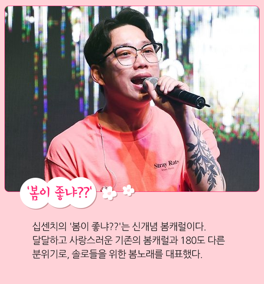 십센치의 '봄이 좋냐??'는 신개념 봄캐럴이다. 달달하고 사랑스러운 기존의 봄캐럴과 180도 다른 분위기로, 솔로들을 위한 봄노래를 대표했다. 2016년 발표 당시 '벚꽃엔딩'을 제치고 차트 1위를 차지했을 정도로 새롭게 봄캐럴을 대표하는 음악이 됐다. 솔로들을 위한 재치 있는 가사가 인상적이라 재미있는 곡이다.