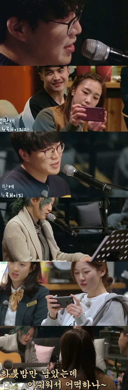 '달팽이 음악회'가 펼쳐졌다.김자인이 먼저 노래를 시작했다. 결혼식 때 불렀다는 노래를 수줍게 소화했다.