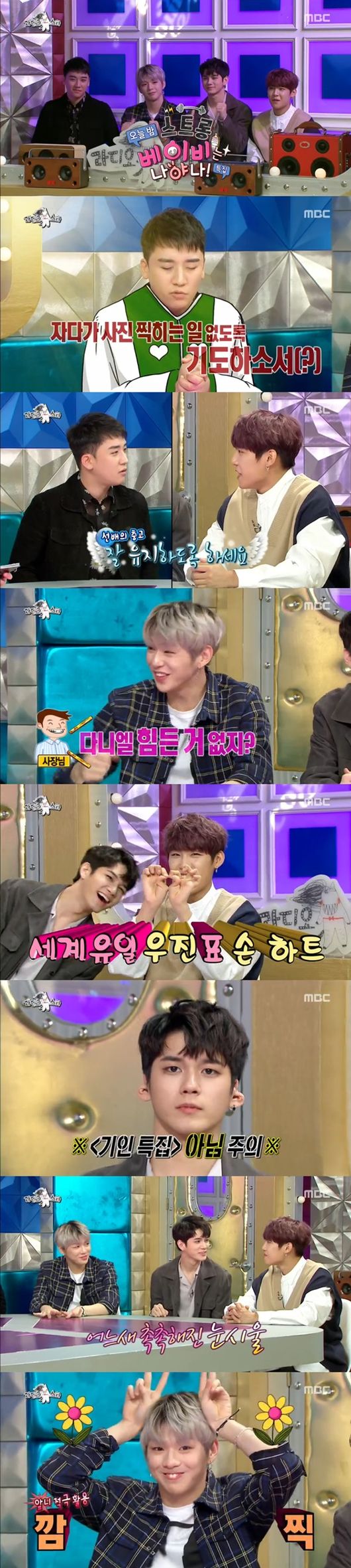 21일 오후 방송된 MBC 예능 프로그램 '라디오스타'에서는 빅뱅 승리와 워너원 강다니엘, 옹성우, 박우진이 출연해 '오늘밤 스트롱 베이비 나야나' 특집을 꾸몄다.