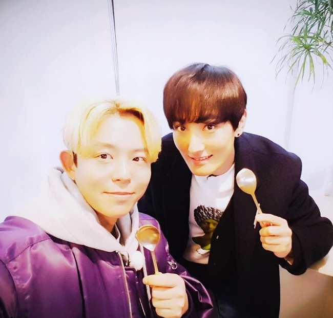 공개된 사진에는 토니안과 강타의 다정한 모습이 담겨 있다. 두 사람은 종합편성채널 JTBC 예능프로그램 '한끼줍쇼'의 상징은 숟가락을 나란히 들고 있는 모습. 미소로 팬들에게 인사를 전하고 있다.