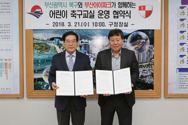 K리그2 부산아이파크가 부산시 북구와 어린이 축구교실 운영 협약식을 진행했다.