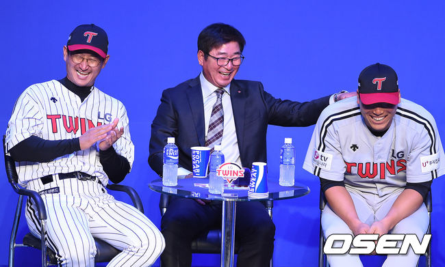 LG도 질 수 없었다. 류중일 감독은 김현수에게 “타율 3할5푼 이상. 안타 150개 이상. 홈런 도 (구장이) 넓지만 30개 이상”이라며 부담을 줬다. 사색이 된 김현수는 “해보도록 하겠습니다”라며 웃음으로 대답을 대신했다. / jasonseo34@osen.co.kr