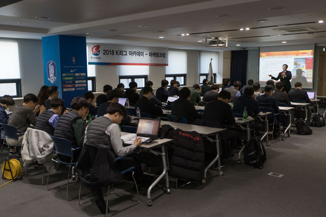 한국프로축구연맹(총재 권오갑)이 22일 오후 축구회관 2층 다목적회의실에서 K리그 구단 마케팅 담당자를 대상으로 하는 '2018 K리그 아카데미-마케팅 과정'을 개최했다.