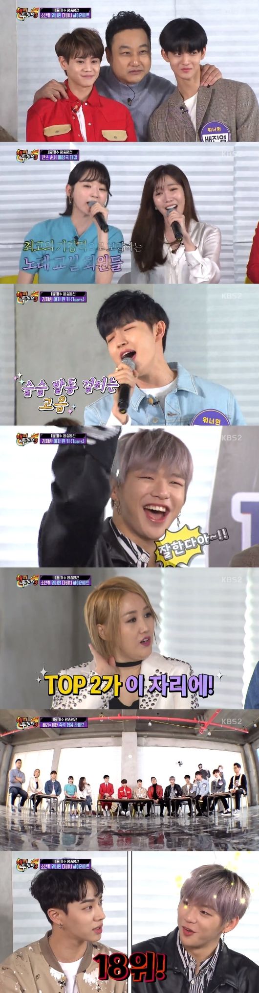 22일 방송된 KBS 2TV '해피투게더'에서는 소찬휘 다비치 하이라이트 워너원이 출연한 '내 노래를 불러줘' 1등가수 왕중왕전 특집이 공개됐다.