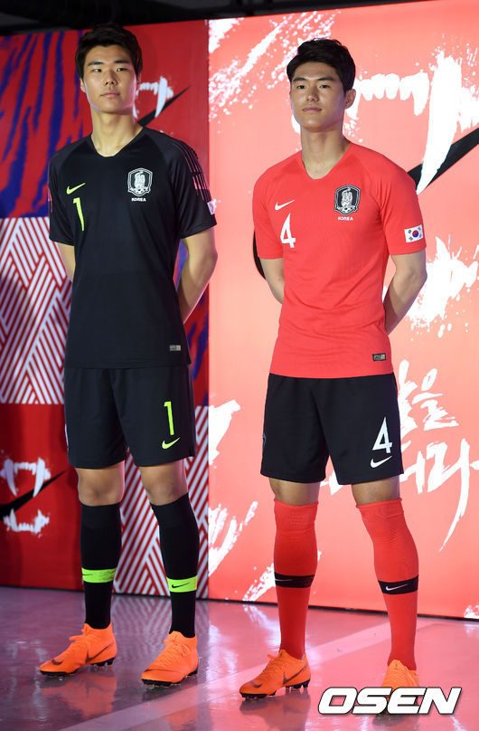 지난 22일 대한축구협회는 2018 러시아 월드컵에서 축구 대표팀이 착용할 유니폼을 발표했다. 나이키가 제작한 축구대표팀 컬렉션은 한국의 정통성과 자긍심을 상징하는 태극기와, 전 세계가 주목하는 문화 트렌드 ‘한류(HanRyu)’에서 영감을 얻어, 가장 한국적이면서도 세련된 디자인으로 완성됐다. 홈 경기 유니폼은 태극 문양에서 비롯된 밝은 붉은색 상의와 태극기 4괘에서 영감을 얻은 검정색 하의가 조화롭게 이루어 졌다.