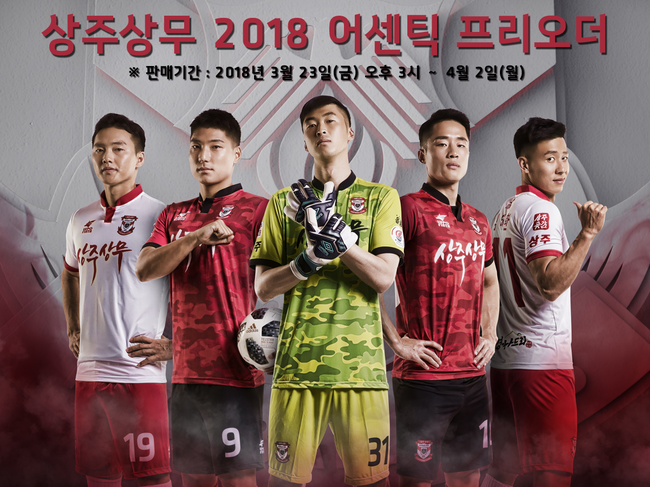 상주상무프로축구단(대표이사 백만흠)이 23일 오후 3시부터 구단 공식 온라인 쇼핑몰을 통해 2018시즌 ‘REAL SOLDIER’ 시즌 4 밀리터리 유니폼 프리오더를 시작한다.