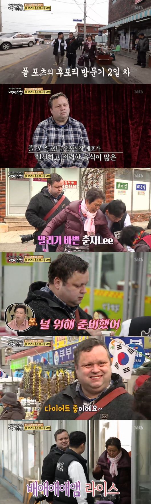 24일 오후 방송된 SBS ‘백년손님’에서는 후포리에 방문한 영국 가수 폴 포츠의 두 번째 이야기가 그려졌다.