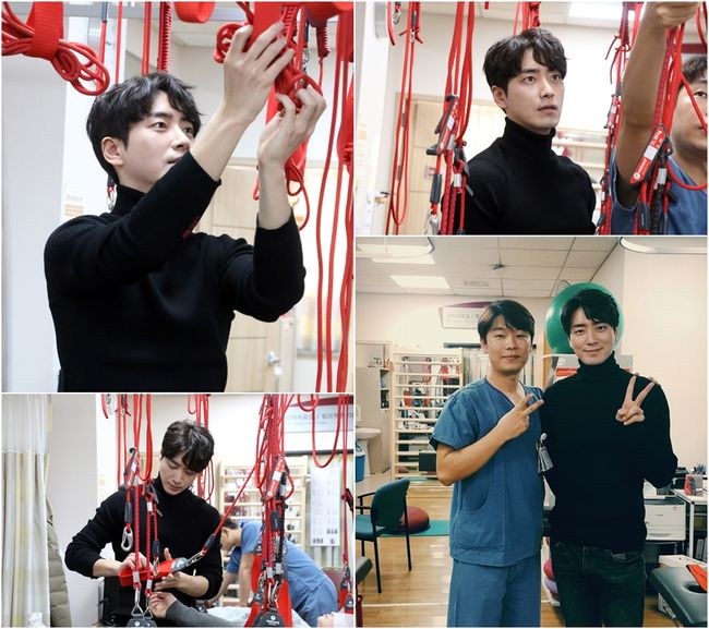더욱이 이준혁은 현직 물리치료사도 힘들다는 고난도 교육까지 척척 소화해내며 물리치료사 예재욱으로의 변신을 철저하게 준비했던 터. 특히 물리치료법 중에서도 어려운 치료법에 속하는 슬링치료(불안정한 줄을 이용한 능동적 운동으로 신경근 조절능력을 향상시키는 치료법)를 앞두고는 전문가의 시범을 매의 눈으로 지켜보는가 하면, 배운 대로 끈을 잡아 직접 시연에 나서는 등 슬링치료에 온 집중을 쏟아냈다. 샤프한 외모로 주변을 들썩이게 만들었지만 정작 이준혁은 실제 병원으로 실습을 나온 실습생처럼 오롯이 훈련에 몰입, 제작진의 찬사를 자아냈다.
