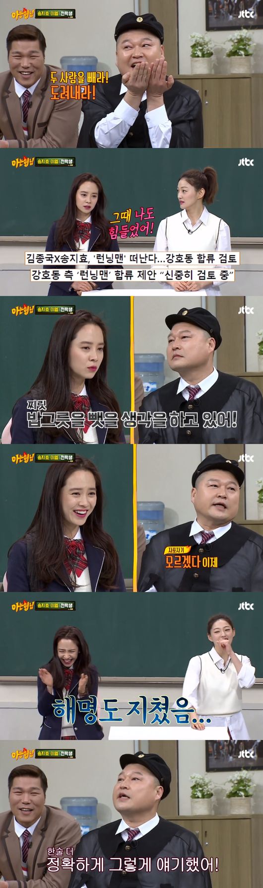 김희철이 이를 놓치지 않고 강호동에게 “형 때문에 힘들어했던 시기가 있지 않냐”고 하자 송지효도 “그때 나도 힘들었다”고 했다. 이수근도 “인연만 됐으면 같이 일할 뻔 했겠다”고 한 마디 했다.