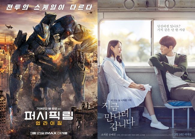 '퍼시픽림:업라이징'과 '지금 만나러 갑니다'가 치열한 대결을 이어가고 있다.