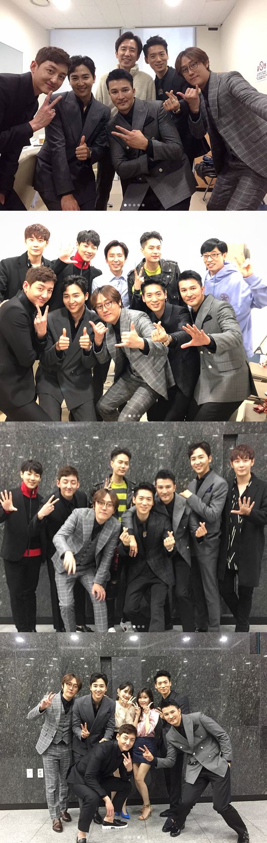 사진 속에서 오션 원년멤버들과 활동 중인 멤버들이 함께 찍은 것을 비롯해 쇼맨 다비치, ‘슈가맨2’의 MC 유재석, 유희열 등과도 사진을 찍은 모습이다.